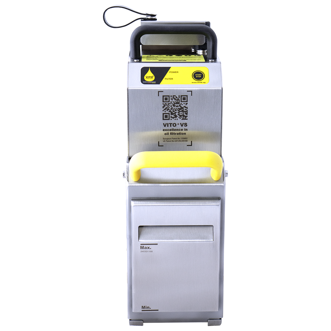 El filtro de aceite para freír VITO VS es ideal para 1 a 3 freidoras con hasta 12 litros de capacidad y para impurezas más ligeras. Desarrollado específicamente para negocios pequeños como cafés, foodtrucks y establecimientos con bajo volumen de frituras, ofrece una solución eficiente y práctica para su cocina.