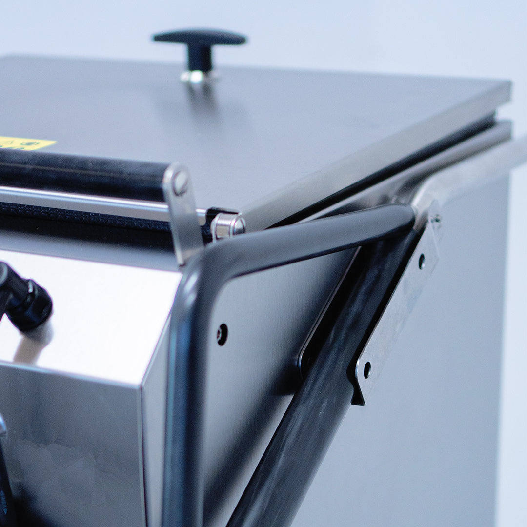 El XM está diseñado para soportar temperaturas de hasta 200 °C, garantizando una seguridad laboral máxima. Un sistema de apagado automático con sensor de nivel de aceite, junto con el cuerpo de acero inoxidable, asegura un funcionamiento fiable y una larga vida útil. Para la filtración de grasas sólidas, dispone de una calefacción integrada.